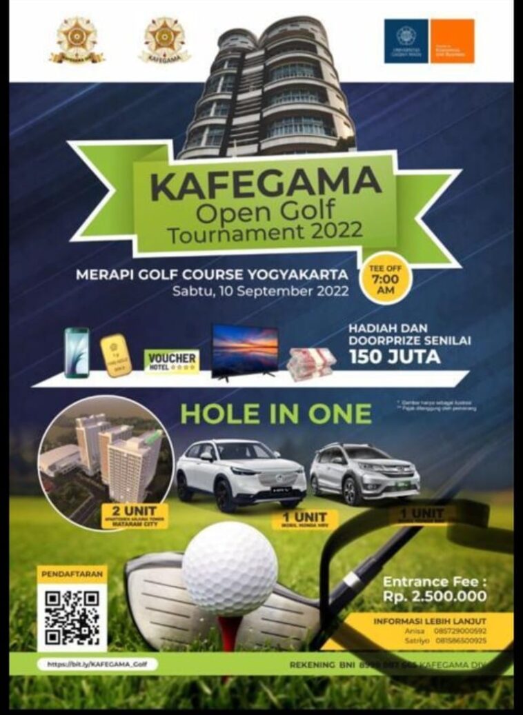 Yogyakarta | Keluarga Alumni Fakultas Ekonomika dan Bisnis Universitas Gadjah Mada Daerah Istimewa Yogyakarta (KAFEGAMA DIY) akan menyelenggarakan Turnamen Golf Terbuka KAFEGAMA 2022. Event tersbut akan diselenggarakan pada hari Sabtu, 10 September 2022. Turnamen terbuka untuk peserta anggoita KAFEGAMA maupun untuk Non-KAFEGAMA atau terbuka untuk umum.