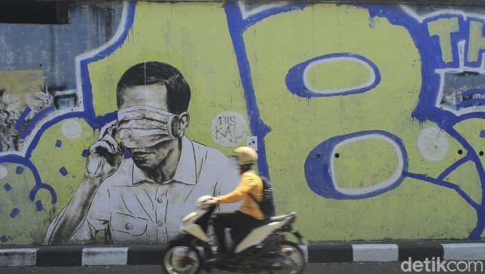 Mural Jokowi dengan mata tertutup masker berada di sisi luar jembatan fly over Pasupati dan dapat dilihat dengan mudah oleh warga yang melintas. Diperkirakan ukuran mural tersebut setinggi dua meter dengan lebar 2,5 meter.