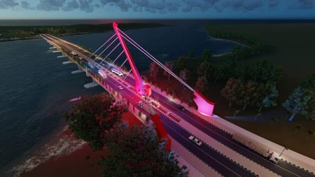 Jembatan dengan bentang fisik 747,7 meter ini dibangun oleh Kementerian Pekerjaan Umum dan Perumahan Rakyat (PUPR) berasal dari dana pinjaman Islamic Development Bank (IsDB) sebesar Rp364,6 miliar. Dijadwalkan, proses pembangunann dilakukan sejak Januari 2021 selama 24 bulan. Namun nyatanya, proses berlangsung lebih cepat dari target. Pada Agustus 2022, seluruh proses fisik telah dinyatakan rampung.