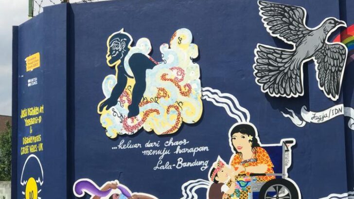 Di Yogyakarta – Indonesia, kolaborator seni dua dimensi mural tersebut, ialah Jogja Disabilty Arts (JDA). Yakni yayasan yang berdiri jelang masa pandemi, tepatnya akhir tahun 2019. Membangun kesetaraan bagi difabel dalam mencipta dan menikmati karya seni budaya, ialah ruh yang dibangun dalam gerakannya.