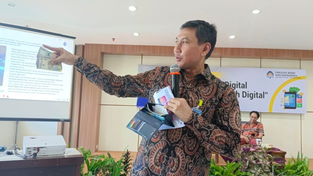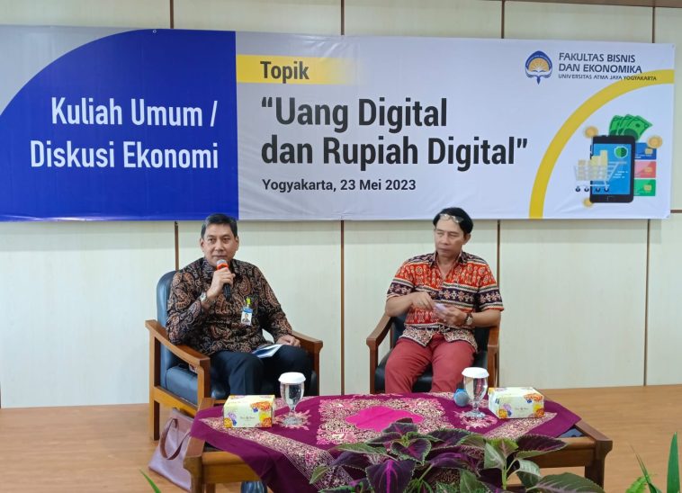 Yogyakarta | Prodi Ekonomi Pembangunan (Peminatan Ekonomi Bisnis) Fakultas Bisnis dan Ekonomika Universitas Atma Jaya Yogyakarta (FBE UAJY) menyelenggarakan kuliah umum (general lecturer) dengan topik “Pembayaran Digital dan Rupiah Digital” (Selasa, 23/05/23). Narasumber kuliah umum adalah Budiharto Setyawan (Kepala Kantor Perwakikan Bank Indonesia DIY) dengan moderator A. Gunadi Brata (Dosen Prodi Ekonomi Pembangunan FBE UAJY). Kuliah umum dihadiri oleh 125 perserta baik mahahasiswa (Prodi Ekonomi Pembangunan, Manajemen, Akuntansi, dan Program Internasional) maupun dosen FBE UAJY.