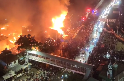 Jakarta | Kebakaran hebat melanda Pasar Gembrong yang menghanguskan sejumlah kios belum dapat dipadamkan hingga kini, Senin, 25 April 2022.