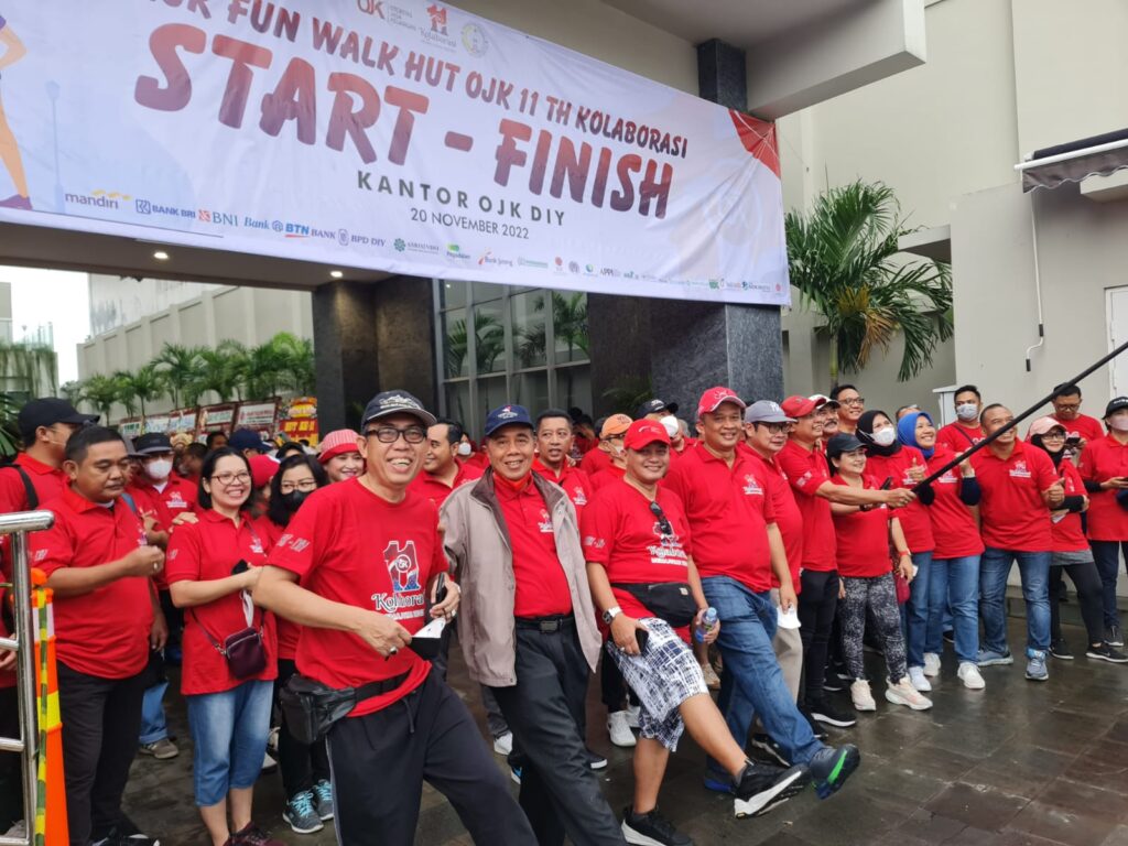 Yogyakarta | Otoritas Jasa Keuangan (OJK) mempunyai tugas melakukan pengaturan dan pengawasan terhadap kegiatan jasa keuangan di sektor Perbankan, sektor Pasar Modal, dan sektor Industri Keuangan Non-Bank (IKNB). Pada tanggal 22 November 2022, OJK telah berusia 11 tahun. Berkaiatan dengan HUT OJK ke-11, Kantor OJK DIY bekerjasama dengan Forum Komuniksasi Industri Jasa Keuangan (FKIJK) DIY menyelenggarakan Jalan Sehat (Fun Walk) (Minggu, 20/11/22).