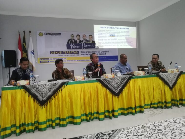 Yogyakarta | Universitas Widya Mataram (UWM) Yogyakarta menyelenggarakan diskusi terbatas dengan tema “Outlook Ekonomi Indonesia 2023: Bagaimana Proyeksi Ekonomi Yogyakarta Tahun Depan?”. Diksusi tersebut diselenggarakan di Kampus Terpadu UWM, Banyuraden, Sleman, Yogyakarta (Kamis, 05/01/23). Narasumber dalam acara ini adalah Prof. Mahfud Solihin, M.Acc., Ph.D. (Guru Besar FEB UGM), Dr. Y. Sri Susilo, M.Si. (Dosen FBE UAJY), dan Dr. (cand) Bangun Putra Prasetya, S.E., M.Sc., M.M. (Dosen FE UWM).