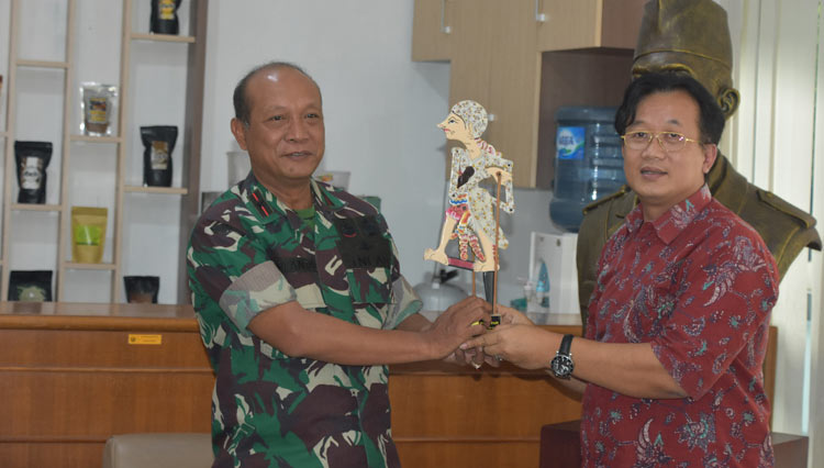 Usai diskusi, Ketua Umum Paguyuban Trah Pangeran Diponegoro (Patra Padi) R. Rahadi Saptata Abra menyerahkan wayang Klitik tokoh Pangeran Diponegoro yang terbuat dari kayu kepada Danrem 072/Pamungkas Brigjen TNI Afianto. (*)