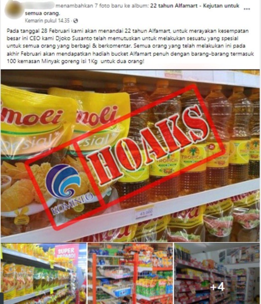 Hoax, Alfamart Ultah Bagi-bagi Hadiah Minyak Goreng 1kg dalam 100 Kemasan